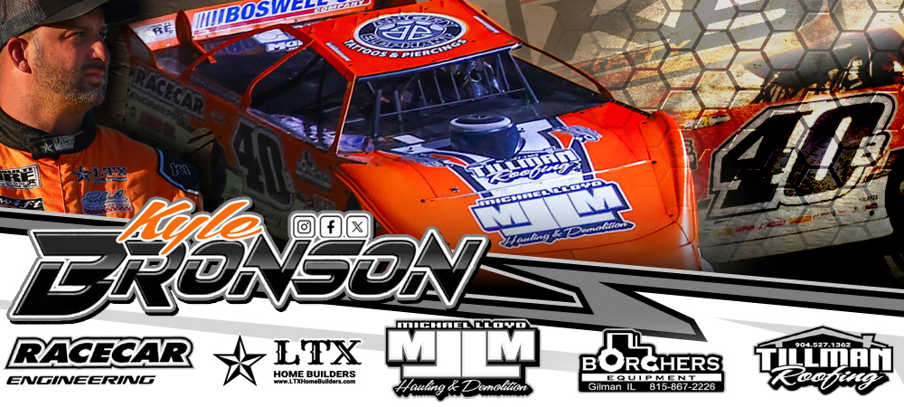 (July 28, 2024) Following a rare weekend off, the #40B team made their way to Fairbury Speedway in downtown Fairbury, Illinois from July 24-27 for a huge stretch of racing action in the Land of Lincoln. Things kicked off on Wednesday night at #FALS with a $20,000 to win Castrol FloRacing Night in America Series battle. Kyle Bronson advanced to third in his loaded heat race prior to finishing twelfth in the final rundown of the 50-lap main event.