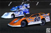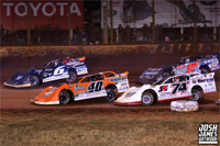 In front of a huge grandstand crowd on Saturday, a hefty $25,000 first place prize was up for grabs in the finale for the ground-pounding Super Late Models. Kyle finished seventh in his dash and later rolled off from the inside of the fourth row in the 50-lap headliner. At the completion of the contest, the Brandon, Florida ace found himself twelfth in the final rundown and was officially placed fourth in the final version of the national series point standings. Full results from the final weekend of World of Outlaws action can be accessed online by pointing your web browser to www.woolms.com. (Josh James Artwork)