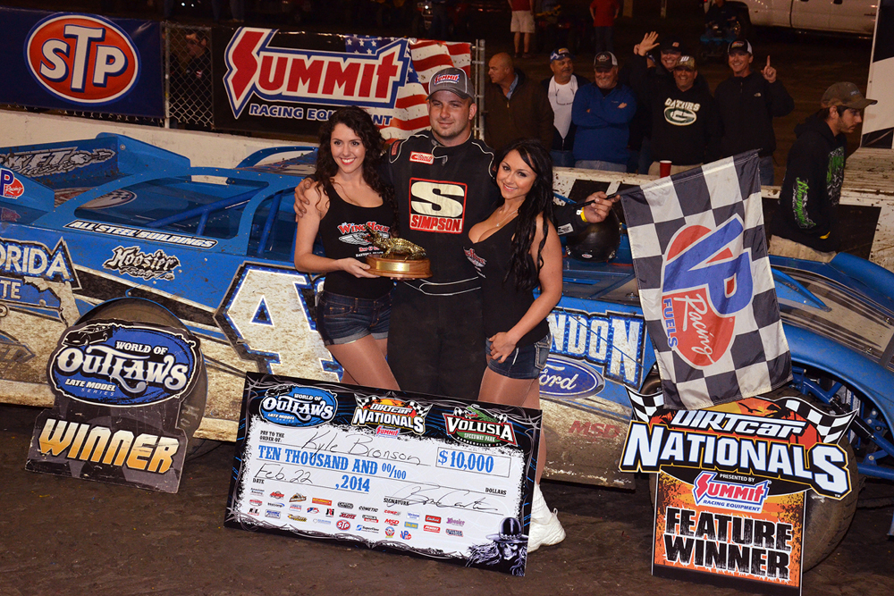 Kyle Bronson picks up a $10,000 World of Outlaws Late Model Series victory at Volusia (FL) Speedway Park during the 'DIRTcar Nationals'